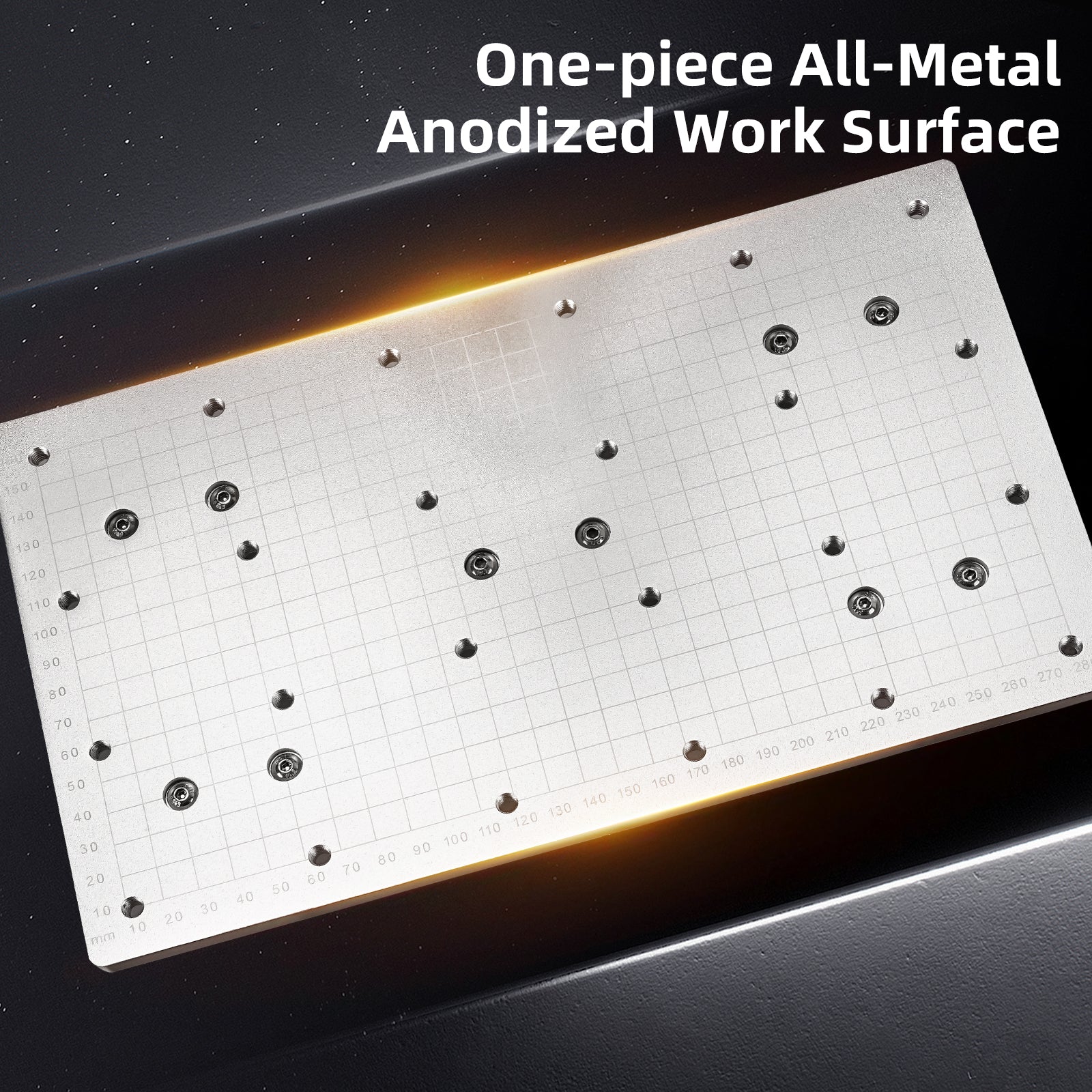 【Plateforme en aluminium à grille graduée】 La conception monobloc en aluminium moulé assure la planéité et la stabilité de la plate-forme de travail. L'échelle de mesure intégrée facilite le positionnement du matériau. De plus, nous avons mis à niveau le mini ensemble de pinces de retenue T-Track en 2 pièces inclus qui vous offre une solution robuste et fiable.