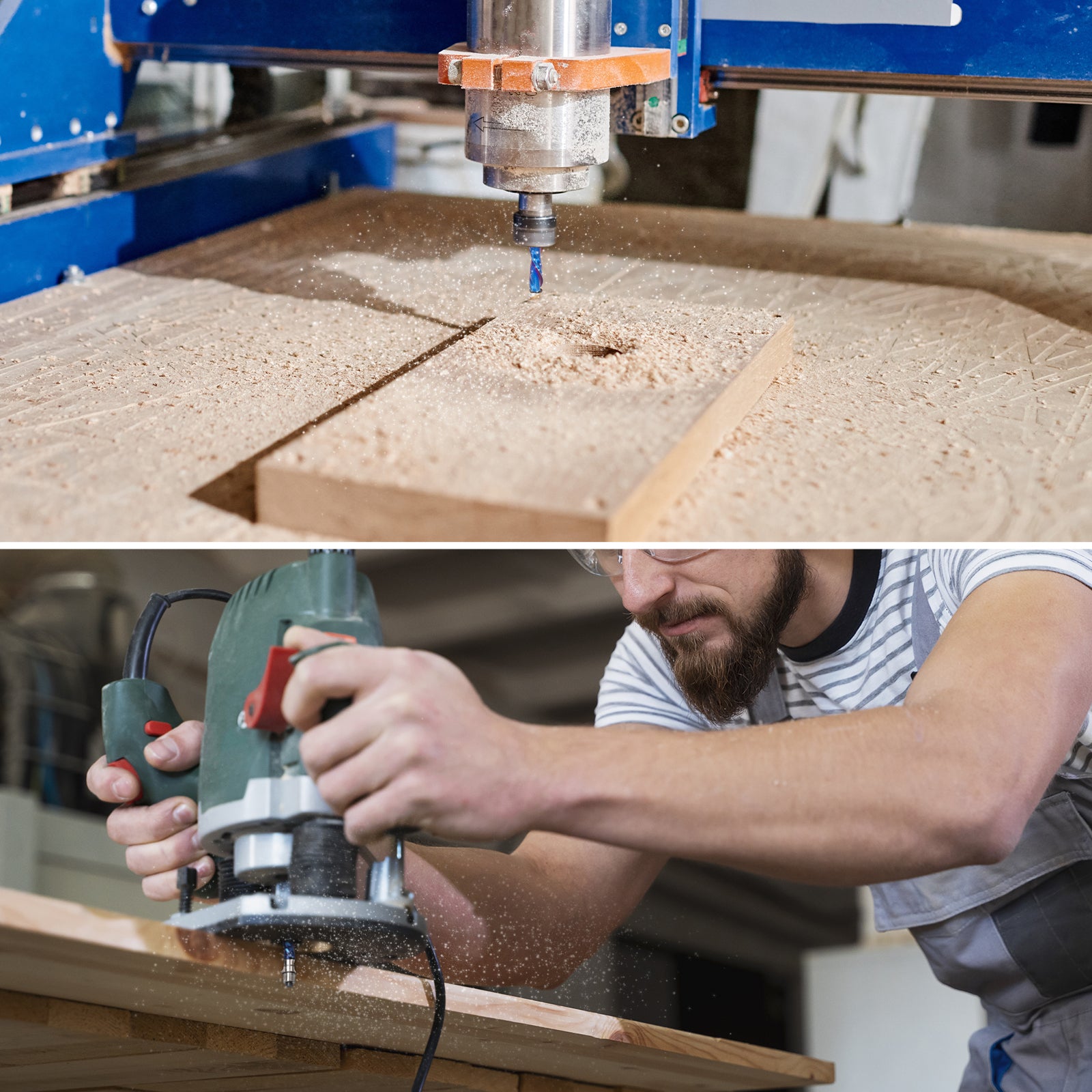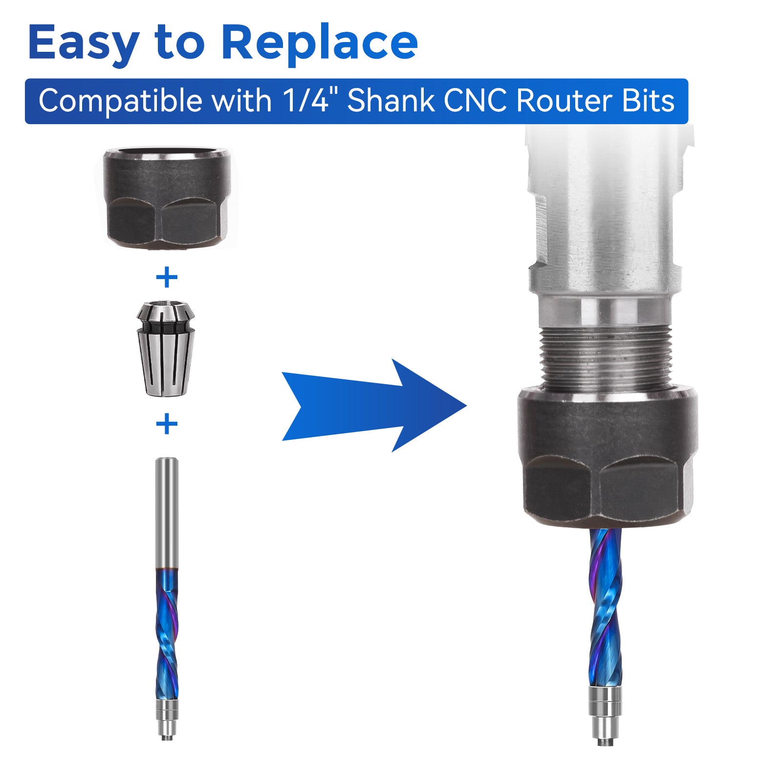 Adéquation : La fraise à affleurer professionnelle à coupe descendante avec roulement supérieur convient aux routeurs CNC et à toute toupie plongeante avec mandrin de 1/4".
