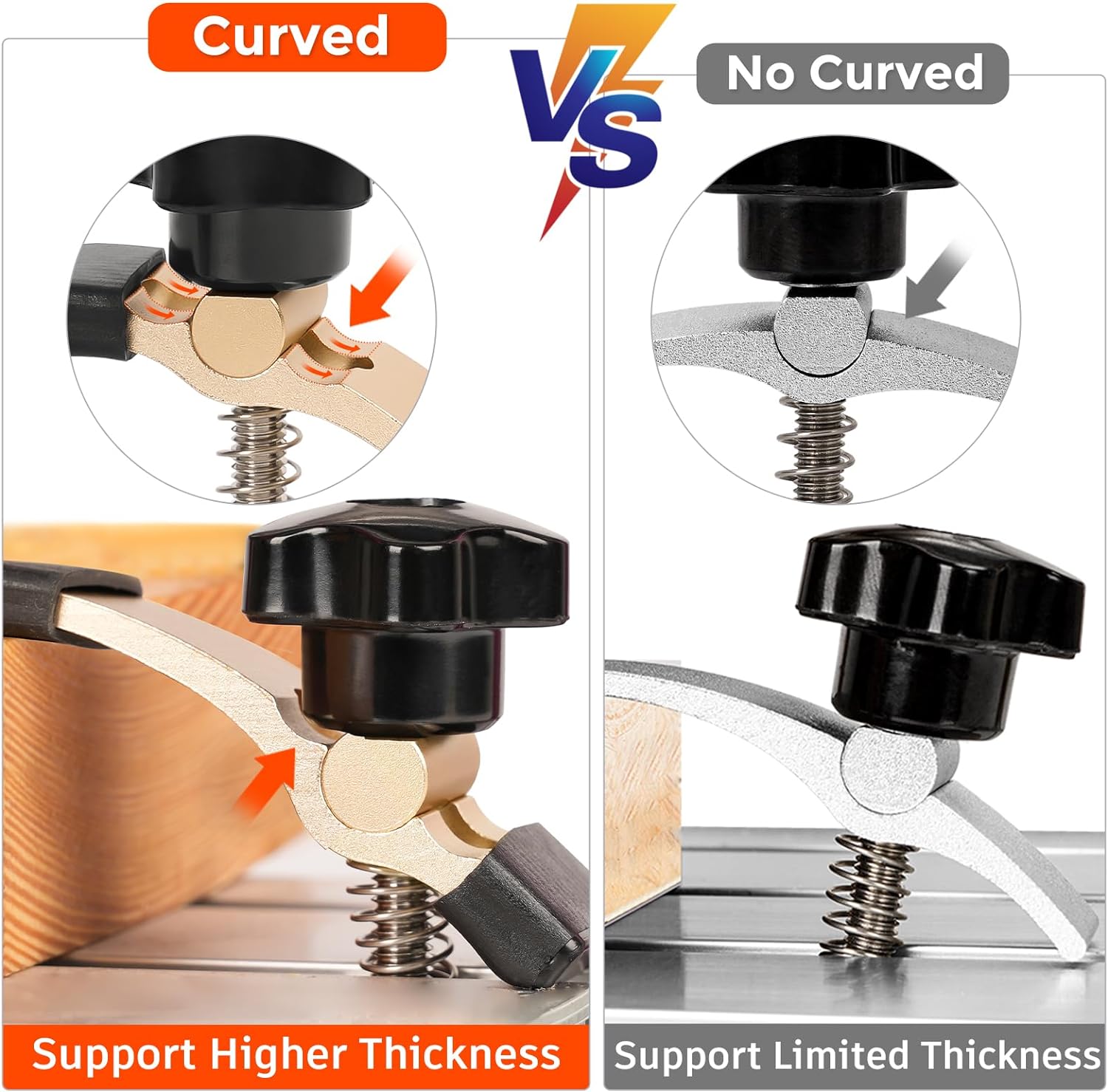 【Plage de travail】 Cette pince s'adapte à des matériaux jusqu'à 1,77 pouces d'épaisseur et dispose de boutons de serrage faciles pour une installation ou un retrait rapide du matériau en stock.