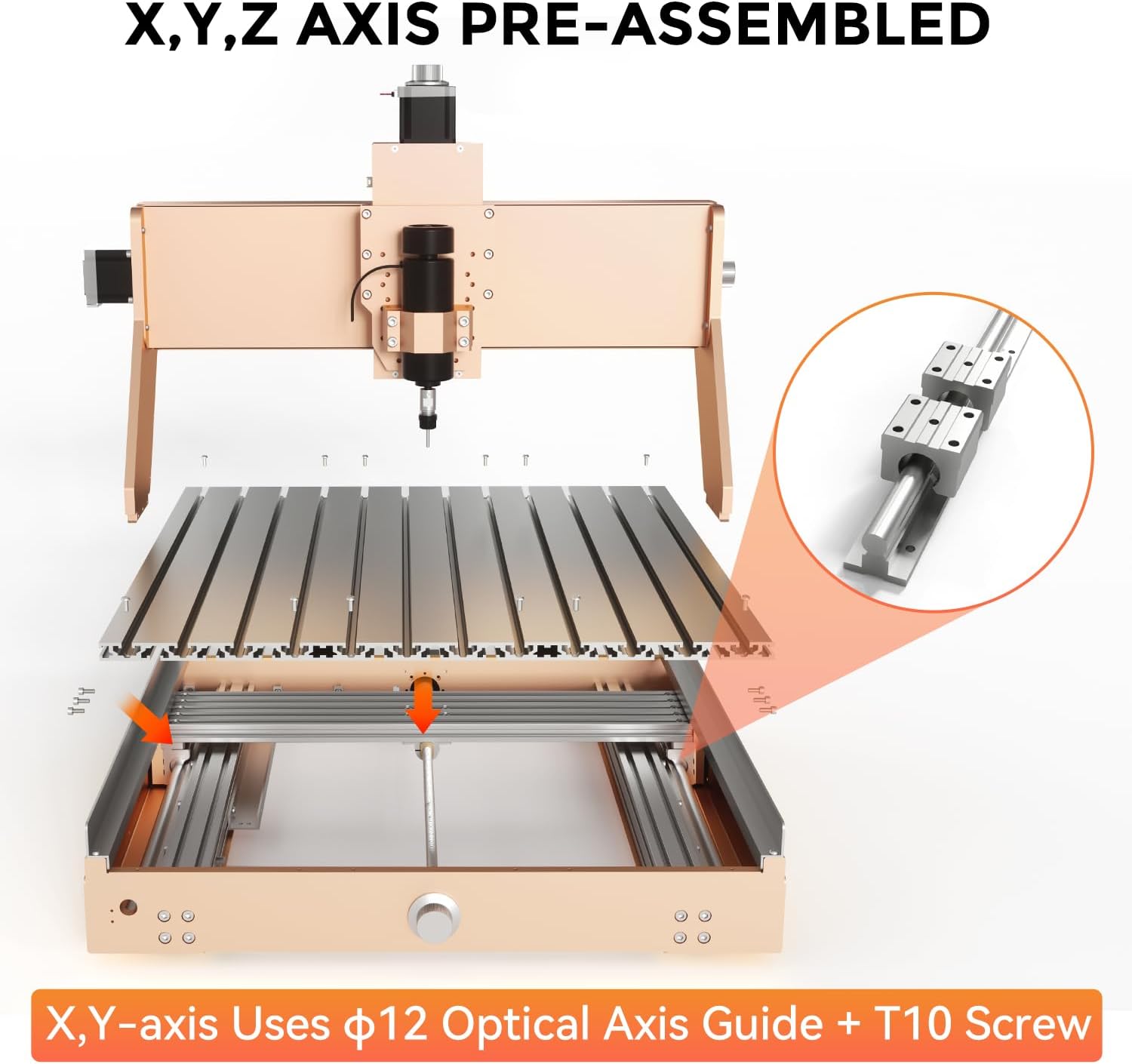 A Lunyee 4040 Turbo CNC gép teljesen fém konstrukcióval rendelkezik, kettős vezetősínnel és vezérorsós rendszerrel, ami jelentősen növeli a gravírozás pontosságát és az általános szilárdságot, miközben csökkenti a működés közbeni zajt.
