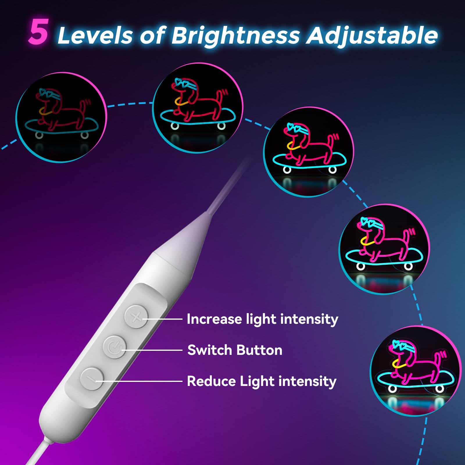 【USB-táp】 LED-es fényreklámaink USB tápellátásúak, 5 fényerőszint-kapcsolóval rendelkeznek, bármilyen USB-aljzatba csatlakoztatható, a tápegység világít.