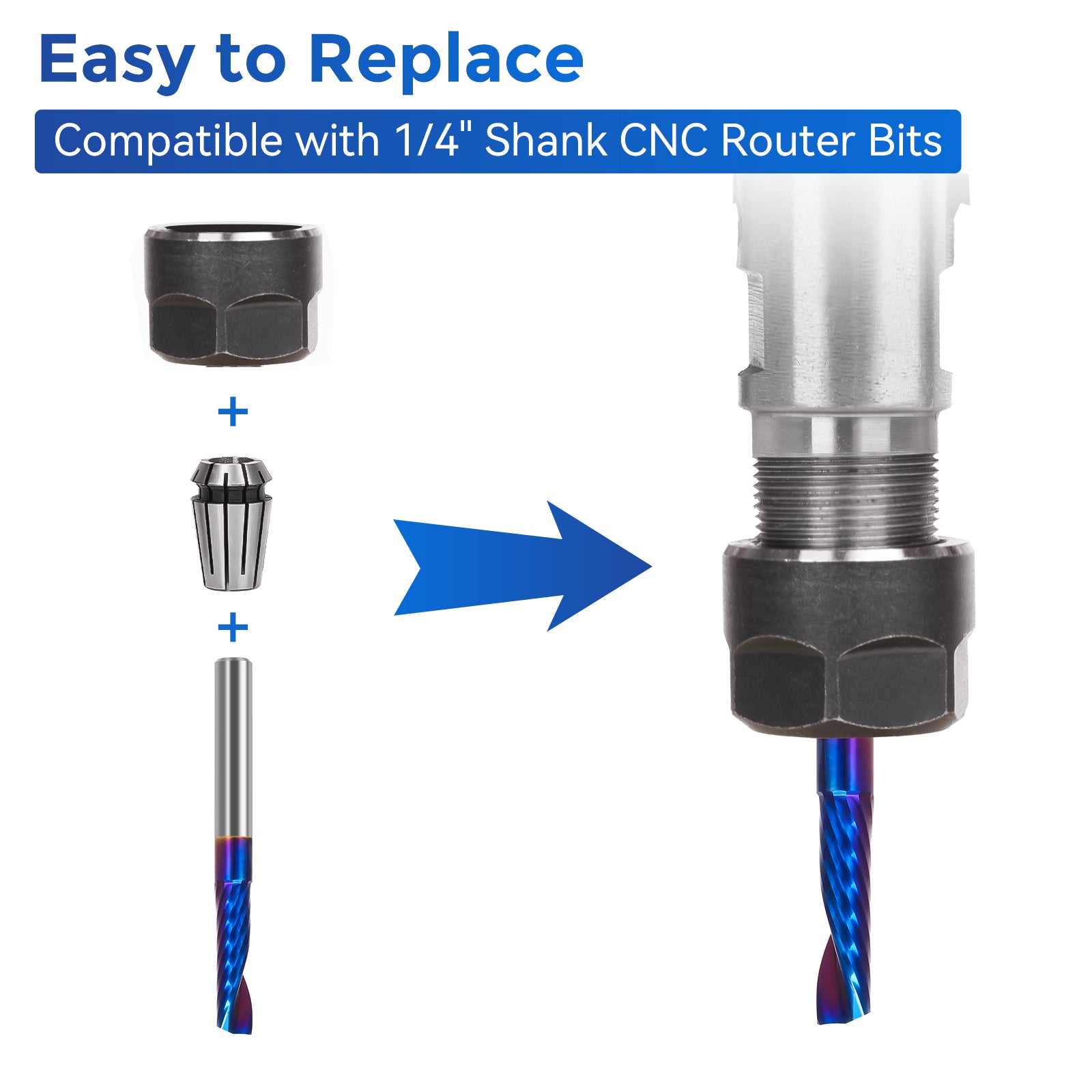 Compatibility: Suitable for most CNC routers, woodworking machines and handheld routers with 1/4 inch chuck.